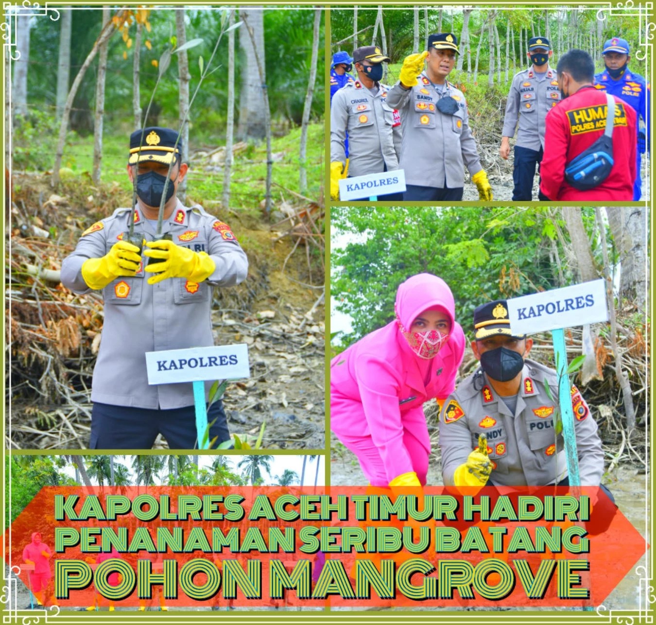 ” Penanaman seribu batang pohon mangrove itu dalam rangka memperingati Hari Pohon Sedunia atau world tree day, dan juga wujud kepeduliaan Polres Aceh Timur terhadap kelestarian lingkungan, ” tutur Kabid Humas.