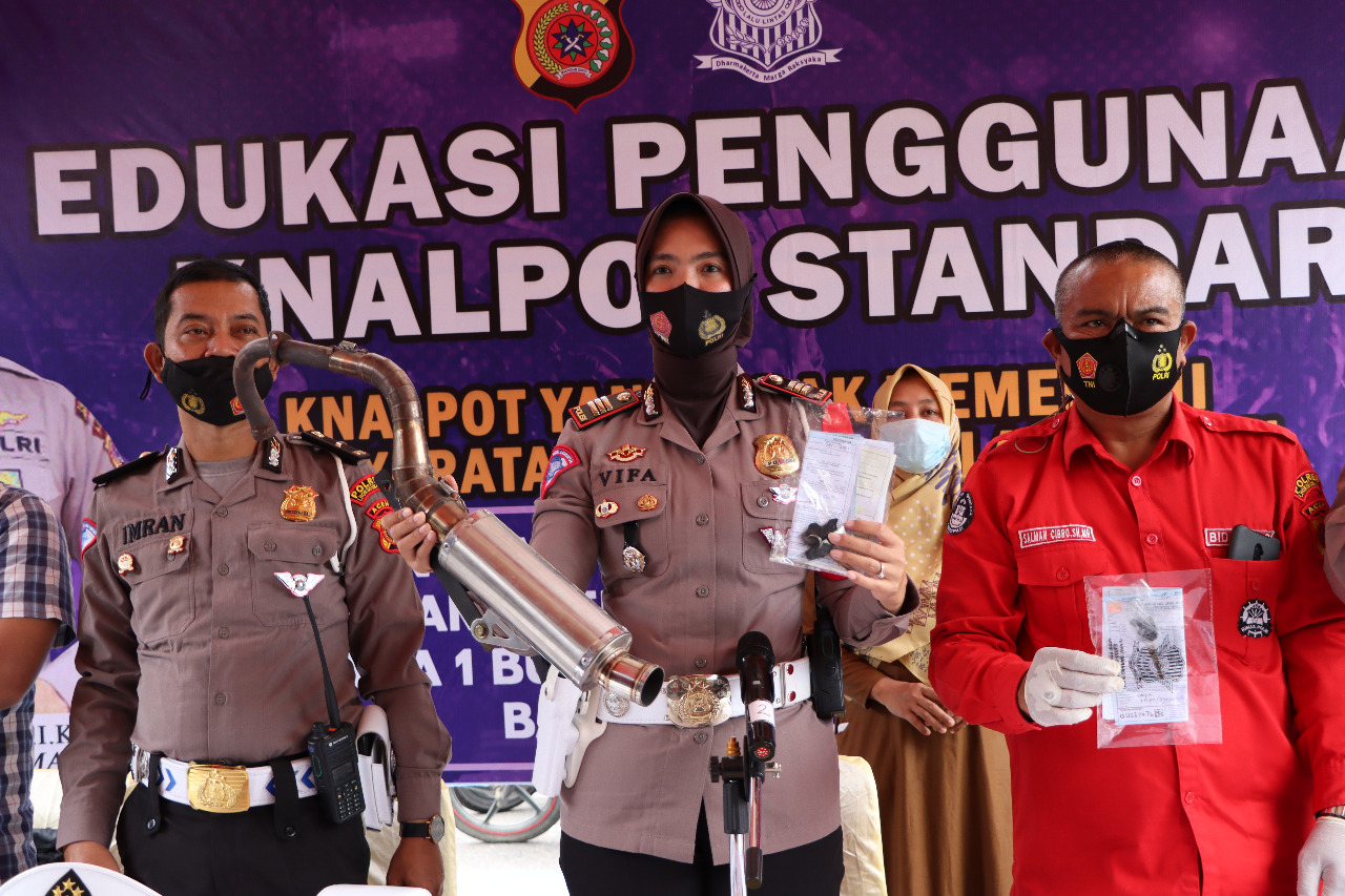 Dalam kesempatan edukasi itu, petugas meminta pemilik sepeda motor tersebut agar membantu petugas dan menjadi pioner dalam mengantisipasi penggunaan knalpot brong di daerah itu, ujar Dirlantas.