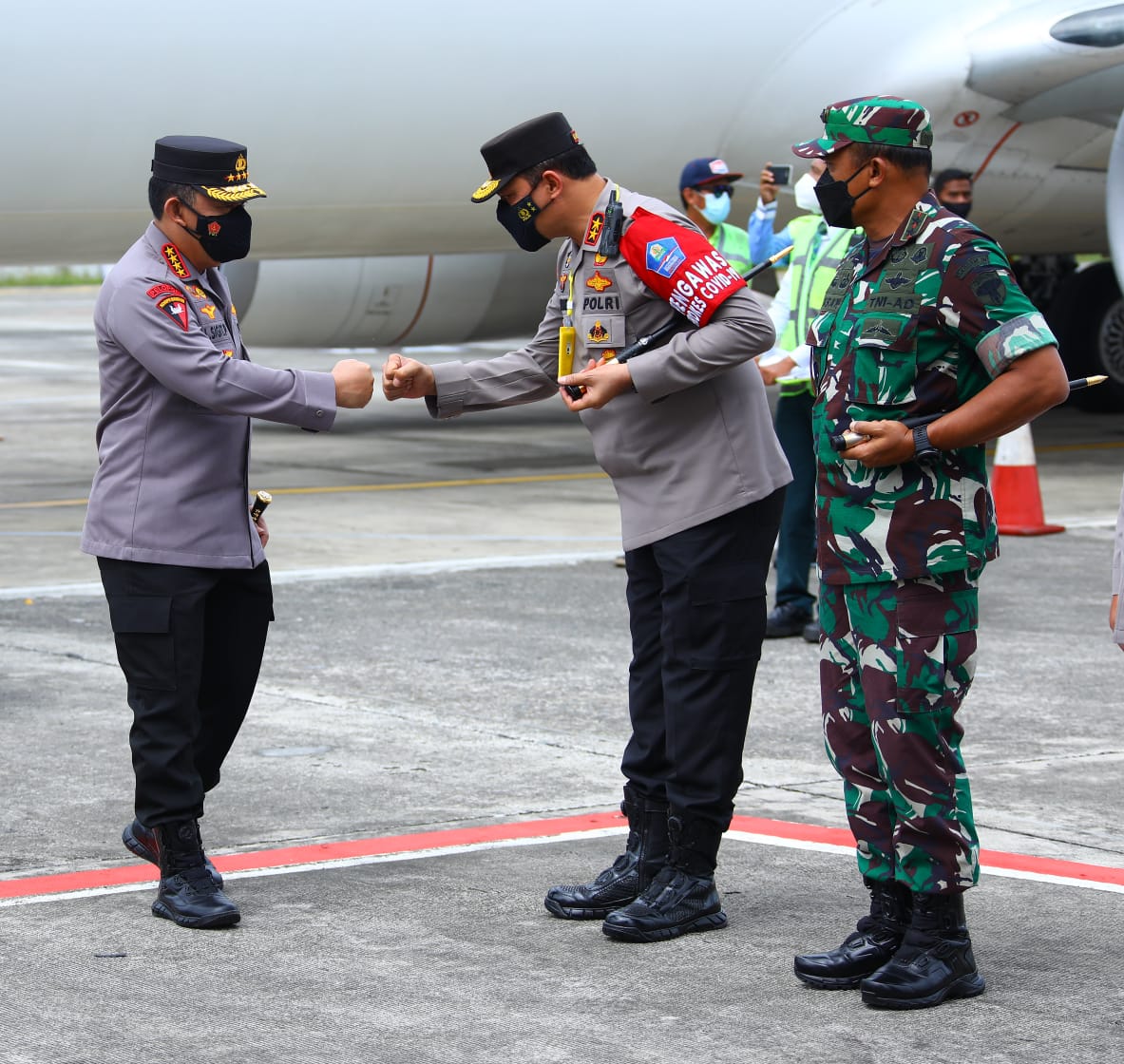 Banda Aceh |Catur Prasetya News Kapolda Aceh Irjen Pol. Drs. Ahmad Haydar, S. H., M. M, bersama Pangdam IM Mayjen TNI Muhammad Hasan menjemput kedatangan Kapolri Jenderal Polisi Drs. Listyo Sigit Prabowo, M. Si, saat tiba di Bandara SIM, Blang Bintang, Aceh Besar, Jum’at (25/2/22) siang.
