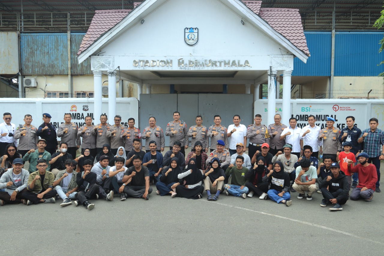 Banda Aceh – Catur Prasetya News Dalam Rangka HUT Bhayangkara Ke 76 Sebanyak 22 pemural turut memeriahkan Hari Bhayangkara di Tahun 2022, Kepolisian Daerah Aceh salah satu penggelaran Lomba Mural yang digelar di Stadion H Dimurthala, Lampineung, Kota Banda Aceh, Sabtu, 18 Juni 2022.