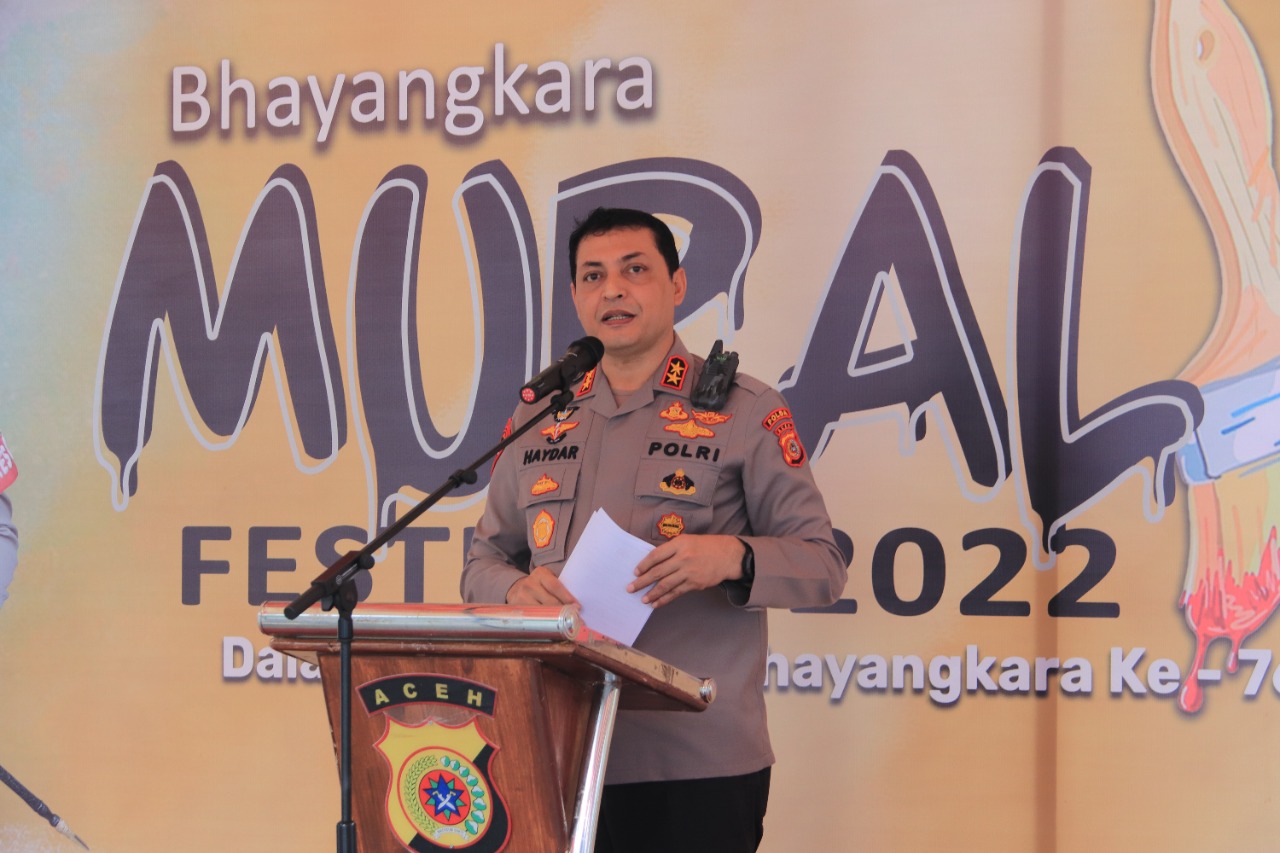 Kapolda Aceh Dalam Sambutan nya mengatakan “Lomba mural ini dalam rangka memeriahkan Hari Bhayangkara. Alhamdulillah ramai peserta yang ikut, salah satunya ada dari rekan TNI,” Kata Irjen Ahmad Haydar saat membuka lomba tersebut (18/6/22)