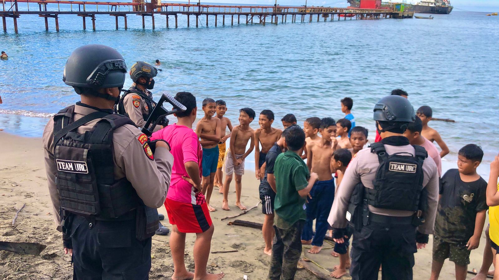 LHOKSEUMAWE |Catur Prasetya News – Tim Unit Reaksi Cepat (URC) Siagam Polres Lhokseumawe melaksanakan patroli di sejumlah lokasi wisata di wilayah hukum Polres Lhokseumawe, Minggu (19/6/2022), dalam patroli ini personel mengimbau pengunjung agar mengawasi dan menjaga anak – anak.