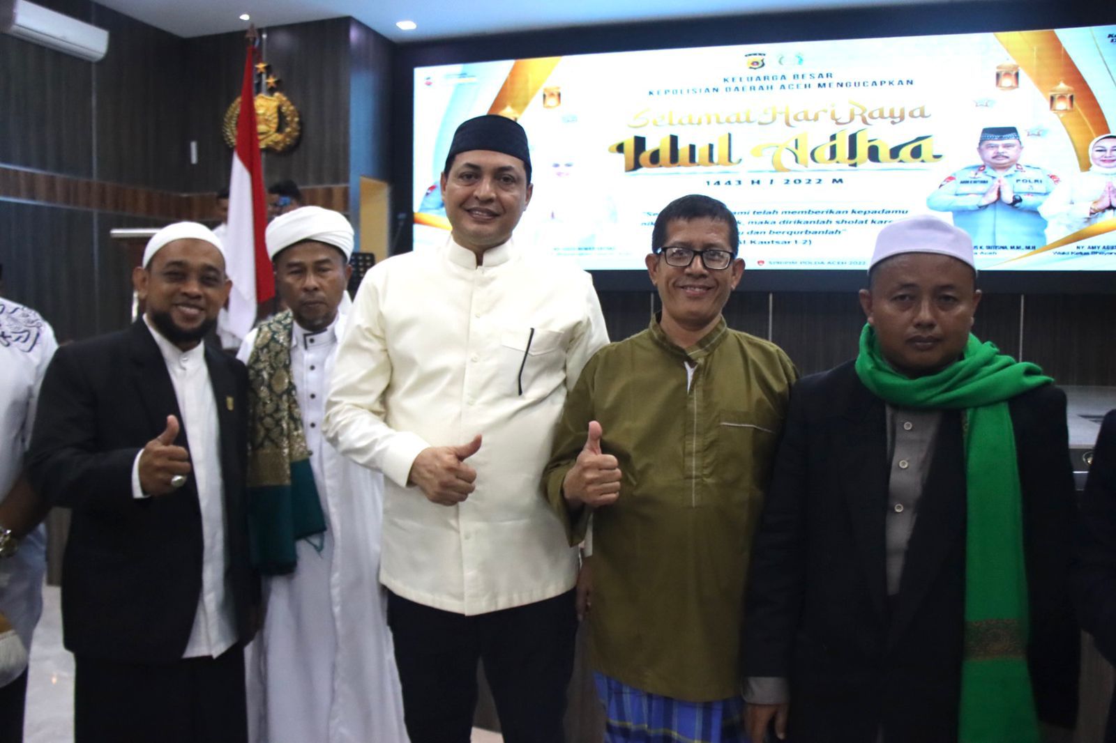 Seusai penyerahan hewan qurban, Kapolda Aceh menggelar halal bi halal dengan sejumlah pimpinan Dayah dan tokoh masyarakat di Aula Presisi, Mapolda Aceh, tutup Kabid Humas.