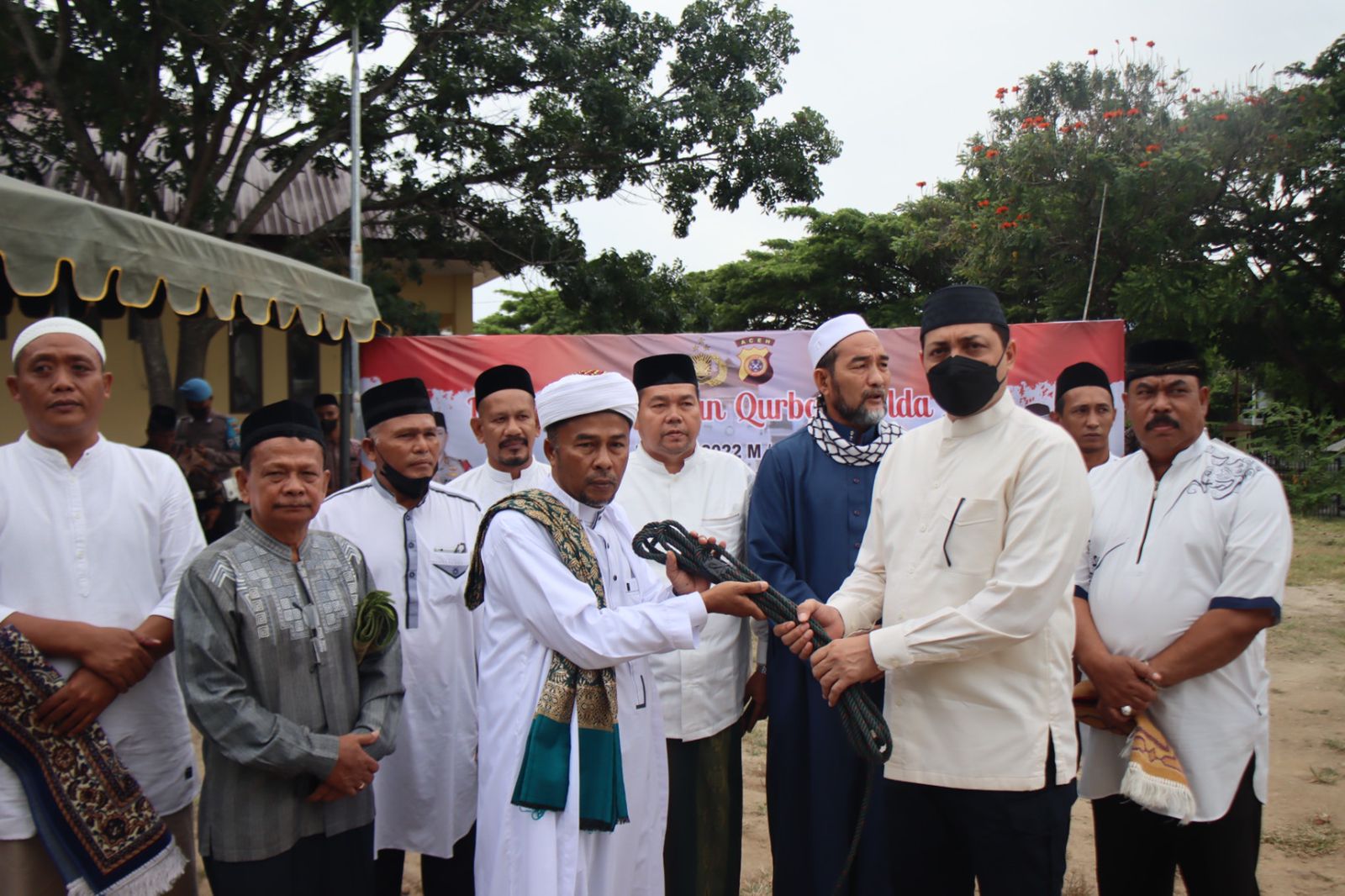 Penyerahan hewan qurban itu dilakukan Kapolda Aceh di Mapolda Aceh, Minggu (10/7/22) pagi, seusai sholat sunnah Hari Raya Idul Adha 1443 H.